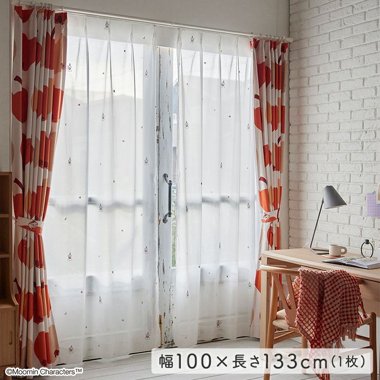 レースカーテン 100×133cm ムーミン カーテン レース 北欧 MOOMIN 洗える 1枚入 おしゃれ ウォッシャブル リビング MOOMIN/ムーミン シアーカーテン 100×133cm×1枚【RINGO GABURI! voile リンゴガブリ! ボイル】 [SH-26-RGV133]