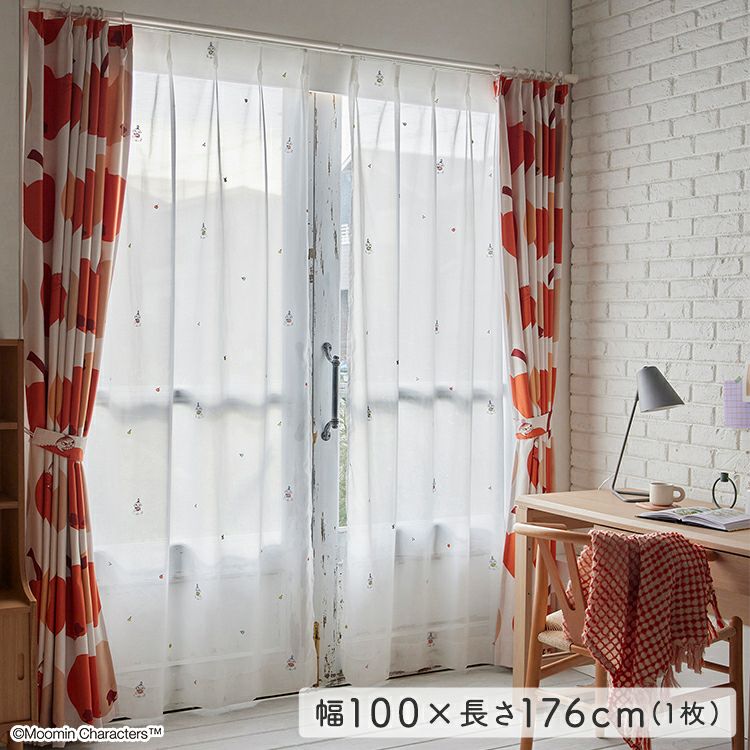 レースカーテン 100×176cm ムーミン カーテン レース 北欧 MOOMIN 洗える 1枚入 おしゃれ ウォッシャブル リビング MOOMIN/ムーミン シアーカーテン 100×176cm×1枚【RINGO GABURI! voile リンゴガブリ! ボイル】 [SH-26-RGV176]
