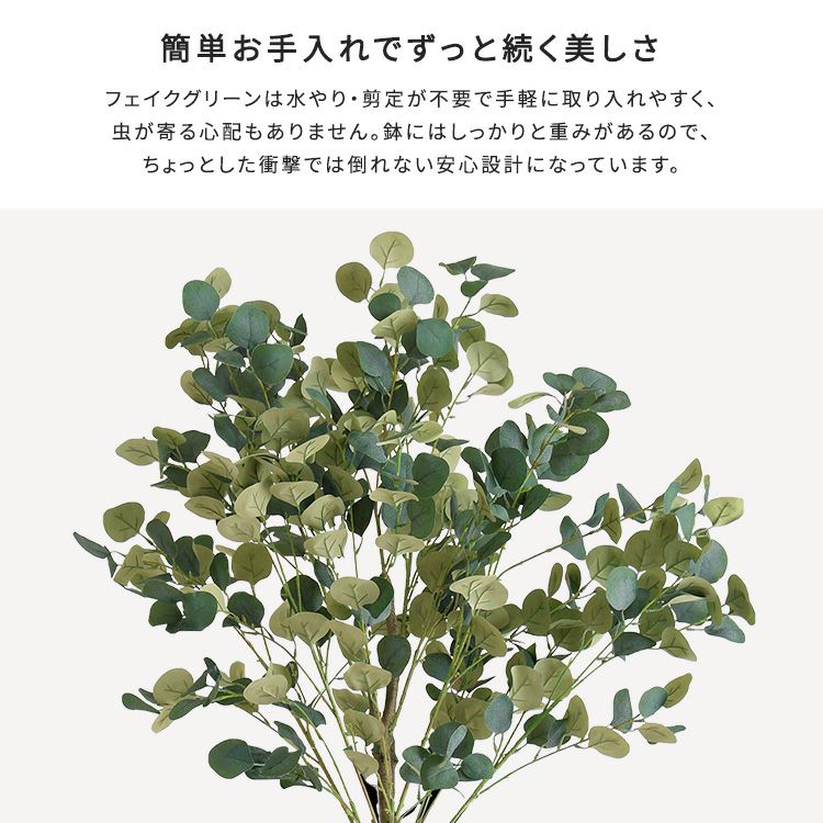 他の画像を見る フェイクグリーン 人工観葉植物 観葉植物 鉢付 ユーカリ Lサイズ 180cm おしゃれ リアル グリーン お手入れ簡単 北欧 お手入れ簡単フェイクグリーン ユーカリ Lサイズ(180cm) [SH-06-EUC-L] ¥ 22,900 税込 お気に入りに登録する