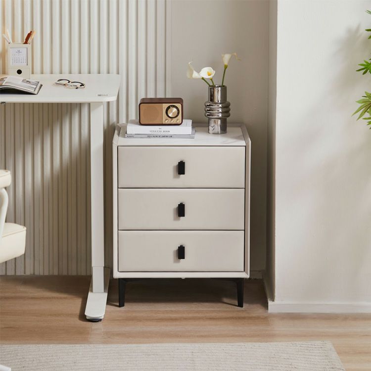 ナイトテーブル 岩板天板 3段引き出し スライドレール 耐久性 高級感 パーティクルボード PVCレザー スチール脚 岩板天板 ナイトテーブル [SH-LI-00568]