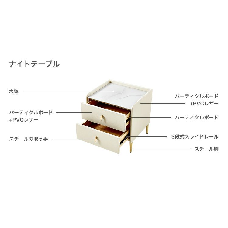 他の画像を見る ナイトテーブル 岩板天板 3段引き出し スライドレール 耐久性 高級感 パーティクルボード PVCレザー スチール脚 岩板天板 ナイトテーブル [SH-LI-00568] ¥ 26,890 税込 お気に入りに登録する