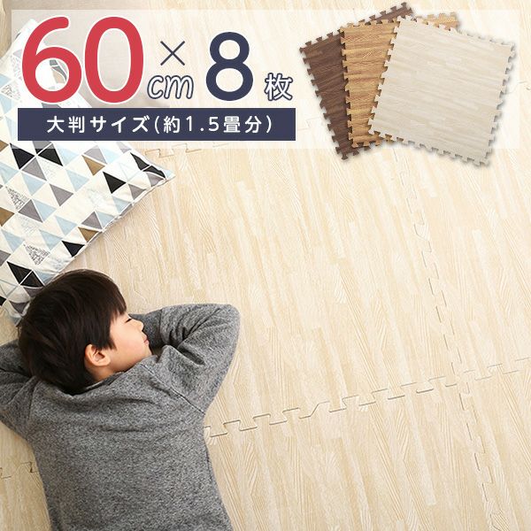 サイドパーツ付き!ナチュラルな木目調ジョイントマット 8枚セット(大判60cm)安心の低ホルムアルデヒド、防音、保温【Fein-ファイン-】