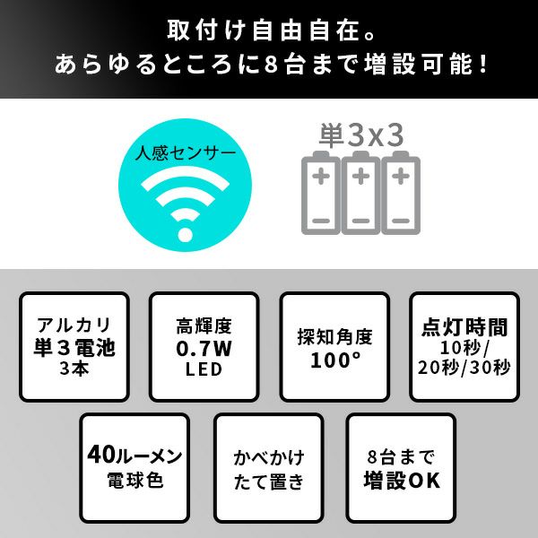 他の画像を見る LEDセンサーライト ワイヤレス 人感センサー 防犯ライト 壁かけ たて置き 40ルーメン 誘導灯 自動消灯 電球色屋内 玄関 階段 廊下 取り付け自由 ワイヤレスセンサーライト2個入り[SH-17-ML06] ¥ 4,980 税込 お気に入りに登録する