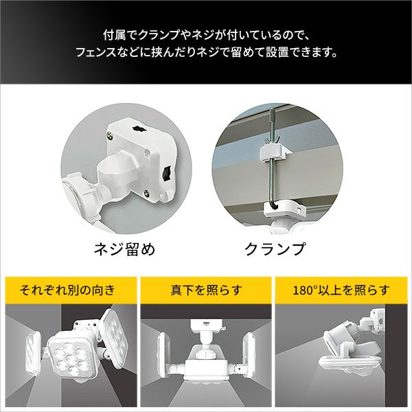 他の画像を見る LEDセンサーライト 14W 3灯 アーム式 人感センサー コンセント式 4000ルーメン 防雨 白色光 24時間警戒 広範囲を照らす 昼夜点灯 3方向照射 14W×3灯 フリーアーム式LEDセンサーライト[SH-17-ML10] ¥ 9,480 税込 お気に入りに登録する