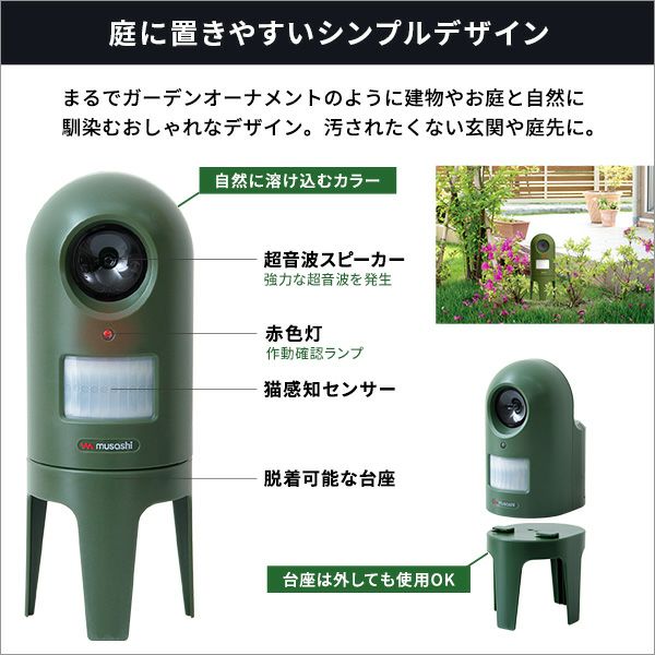 他の画像を見る 超音波式 猫感知センサー 超音波スピーカー 猫しっし 防滴構造 広範囲 屋内 屋外 乾電池式 シンプルデザイン 台座 超音波式 猫しっし[SH-17-ML13] ¥ 5,490 税込 お気に入りに登録する
