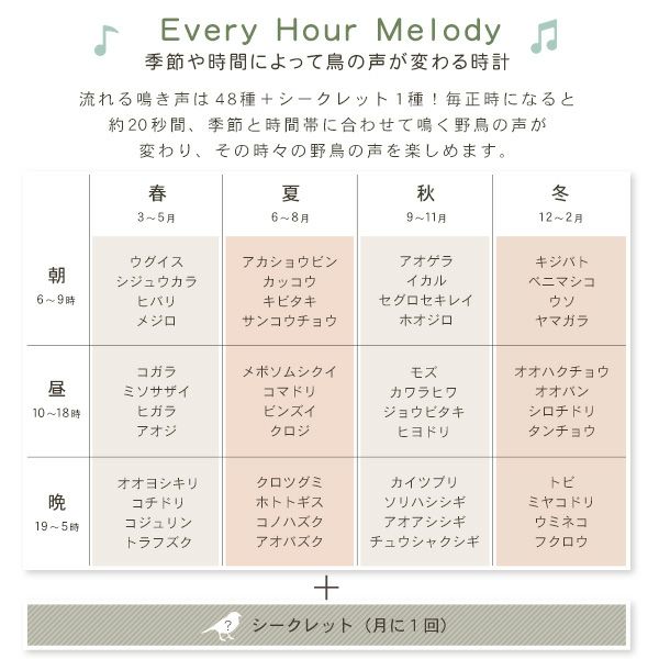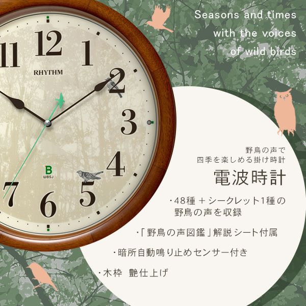 他の画像を見る 在庫切れ 時計 かっこいい 電波時計 子供 壁掛け 野鳥 鳴き声 おしゃれ リビング 家族 プレゼント 贈り物 ギフト 季節 四季 高音質 面白い 楽しい 癒し 自然 日本 ブラウン 掛け時計 時報クロック 野鳥の声 49種類 高質サウンド ブラウン[SH-11-408SR06] ¥ 25,800 税込 お気に入りに登録する
