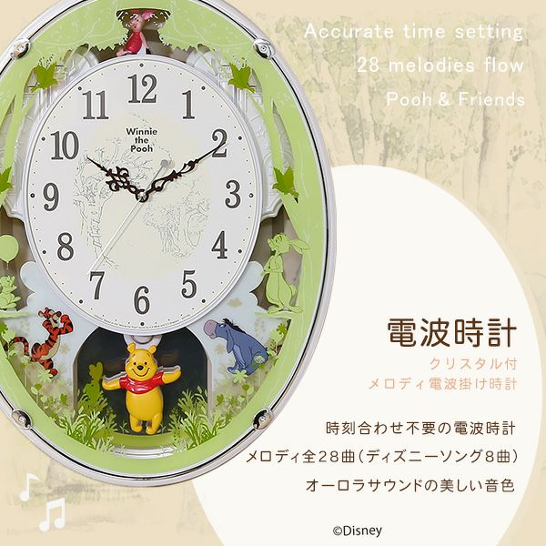 他の画像を見る 在庫切れ 時計 からくり かわいい プーさん ディズニー 電波時計 キッズ 子供 壁掛け 振り子 ミュージック 音楽 曲 リビング 家族 ホワイト グリーン プレゼント 贈り物 ギフト 掛け時計 くまのプーさん からくり時計 28曲の選べるオーロラサウンド[SH-11-523MC03] ¥ 25,800 税込 お気に入りに登録する