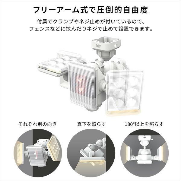 他の画像を見る LEDセンサーライト 14W 3灯 アーム式 人感センサー コンセント式 4000ルーメン 防雨 白色光 24時間警戒 広範囲を照らす 昼夜点灯 3方向照射 14W×3灯 フリーアーム式LEDセンサーライト[SH-17-ML10] ¥ 9,480 税込 お気に入りに登録する