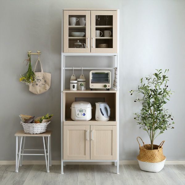 食器棚 ゴミ箱 ごみ キッチン 白 ホワイト 幅 60 cm 高さ 180 おしゃれ かわいい 北欧 木 収納 モダン 韓国 スリム コンパクト 一人 木製 アイアン ラック さわやかなオシャレスリム食器棚[FRA-1860]