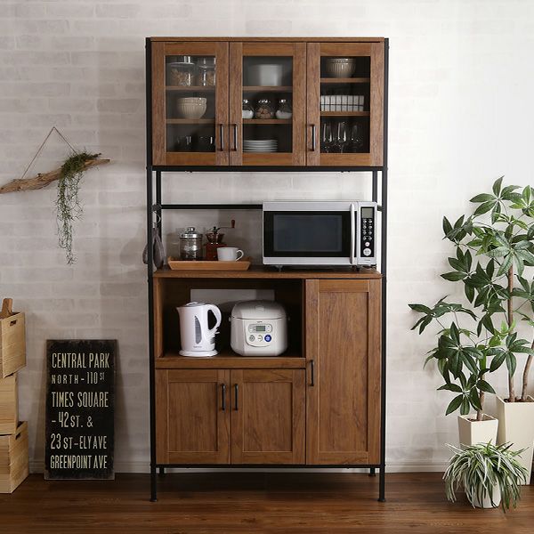 収納 ヴィンテージ食器棚 キッチン収納 食器棚 キッチンボード ガラス扉 スチール 可動棚 高さ調整 スライド棚 コンパクト 大容量 GREACK-グリック- ヴィンテージ食器棚 [GCK-1890]