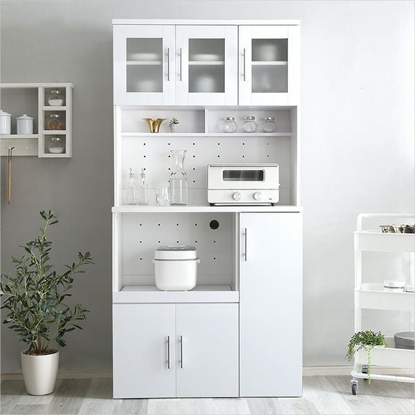 他の画像を見る キッチン収納 食器棚 ホワイトカラー 白色 キッチンボード レンジ台 キッチンキャビネット 幅90 ガラス扉付き 食器棚 幅90cm×高さ180cm [TAPIO2] IASI ¥ 24,900 税込 お気に入りに登録する
