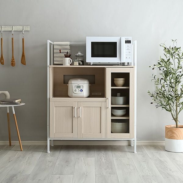 食器棚 レンジ台 キッチン 白 ホワイト 幅 90 cm 高さ 110 おしゃれ かわいい 北欧 木 収納 レンジ台 スライド モダン 韓国 スリム コンパクト 一人 木製 さわやかなオシャレレンジ台 Frais-フレ- [FRA-90R]