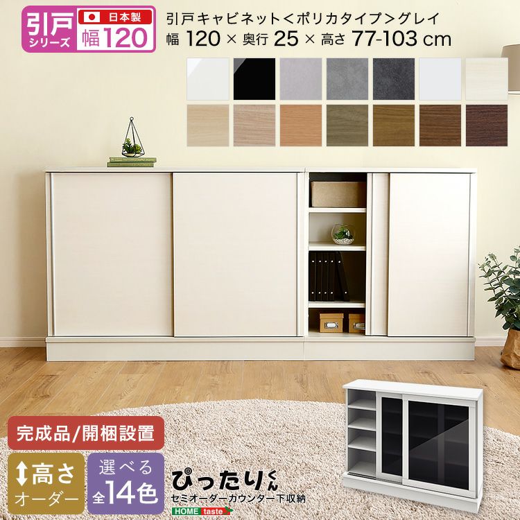 カウンター下収納 キャビネット 引戸 キッチン リビング 玄関 高さオーダー 14色 幅120cm 奥行25cm セミオーダー 日本製 完成品 開梱設置 【引戸シリーズ】セミオーダーカウンター下収納ぴったりくん キャビネット(ポリカタイプ グレイ) 幅120cm×奥行25cm [SH-19PSG120G25]