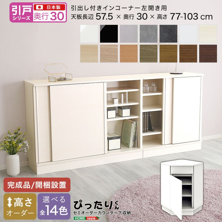 カウンター下収納 インコーナー左 引戸 キッチン リビング 玄関 高さオーダー 14色 幅59cm 奥行30cm セミオーダー 日本製 完成品 開梱設置 【引戸シリーズ】セミオーダーカウンター下収納ぴったりくん 引出し付きインコーナー左開き 奥行30cm [SH-19PSNL30]