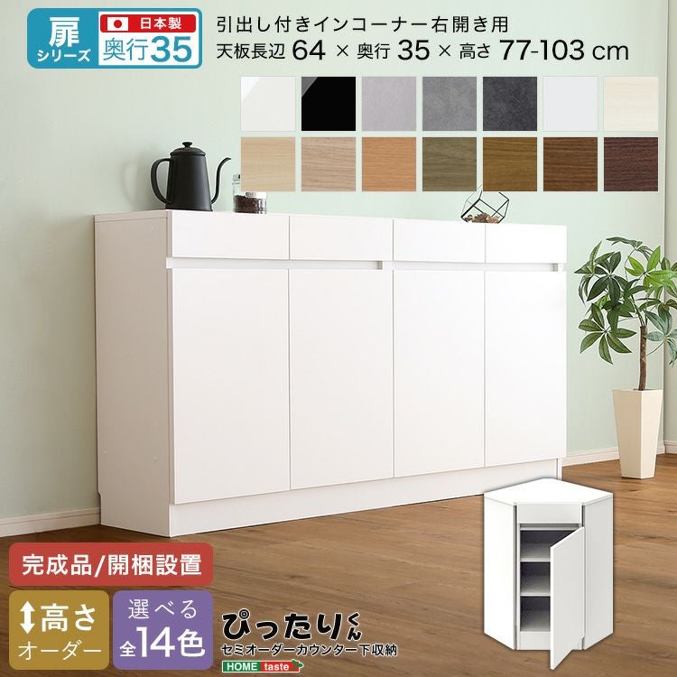 カウンター下収納 インコーナー右 扉 引出し キッチン リビング 玄関 高さオーダー 14色 幅64cm 奥行35cm セミオーダー 日本製 完成品 開梱設置 【扉シリーズ】セミオーダーカウンター下収納ぴったりくん 引出し付きインコーナー右開き 奥行35cm [SH-19PTNR35]