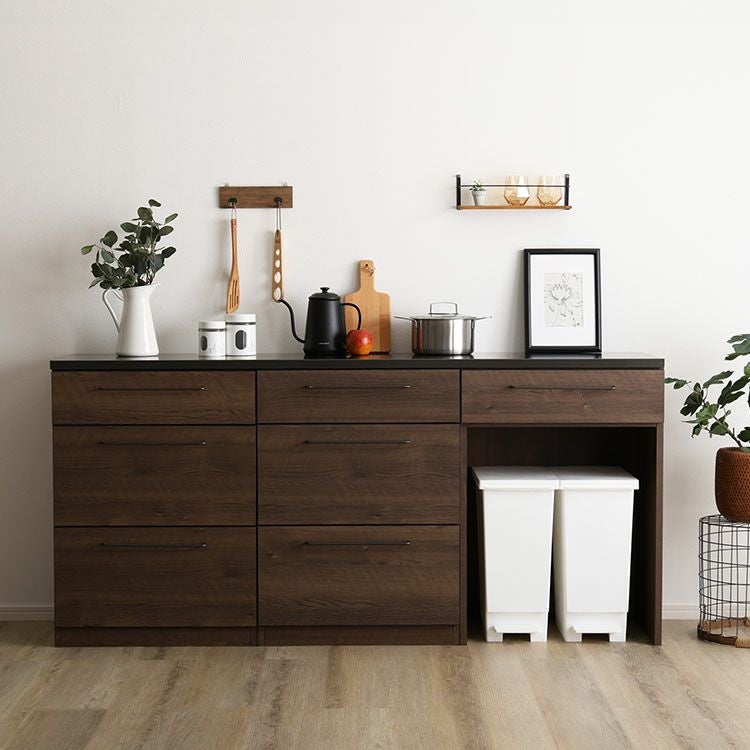 キッチン 収納 食器棚 カウンター レンジ台 おしゃれ 日本製 完成品 ヴィンテージ 耐熱 国産 レトロ ヴィンテージ コンパクト 組み合わせ 180cm 日本製 特殊鋼板を使った組み合わせキッチンカウンター 180cm ゴミ箱上カウンター+ゴミ箱上カウンター+引き出し収納 [SH-22-CKS180-BCC]