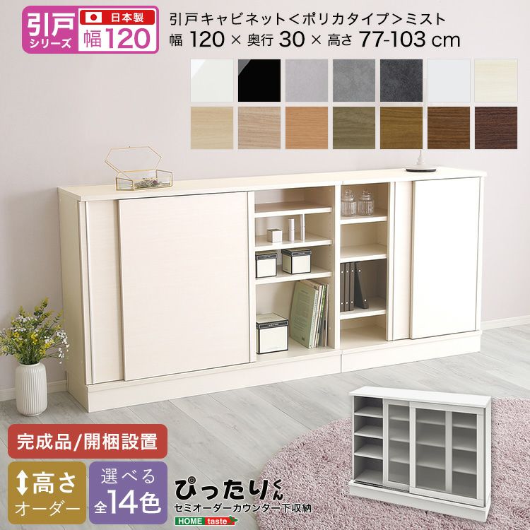 他の画像を見る カウンター下収納 キャビネット 引戸 キッチン リビング 玄関 高さオーダー 14色 幅120cm 奥行35cm セミオーダー 日本製 完成品 開梱設置 【引戸シリーズ】セミオーダーカウンター下収納ぴったりくん キャビネット(ポリカタイプ ミスト) 幅120cm×奥行35cm [SH-19PSG120M35] ¥ 89,900 税込 お気に入りに登録する