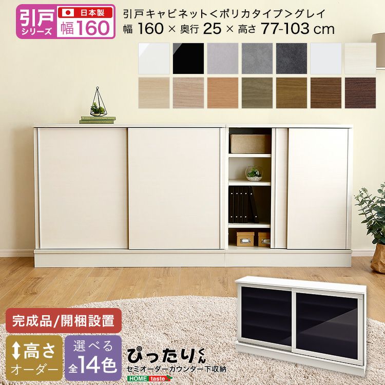他の画像を見る カウンター下収納 キャビネット 引戸 キッチン リビング 玄関 高さオーダー 14色 幅160cm 奥行25cm セミオーダー 日本製 完成品 開梱設置 【引戸シリーズ】セミオーダーカウンター下収納ぴったりくん キャビネット(ポリカタイプ グレイ) 幅160cm×奥行25cm [SH-19PSG160G25] ¥ 94,900 税込 お気に入りに登録する