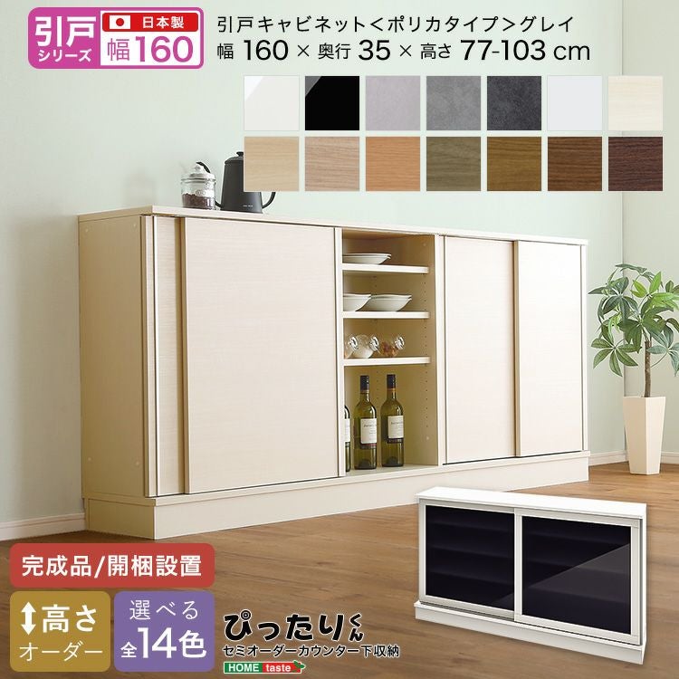 他の画像を見る カウンター下収納 キャビネット 引戸 キッチン リビング 玄関 高さオーダー 14色 幅160cm 奥行35cm セミオーダー 日本製 完成品 開梱設置 【引戸シリーズ】セミオーダーカウンター下収納ぴったりくん キャビネット(ポリカタイプ グレイ) 幅160cm×奥行35cm [SH-19PSG160G35] ¥ 99,900 税込 お気に入りに登録する