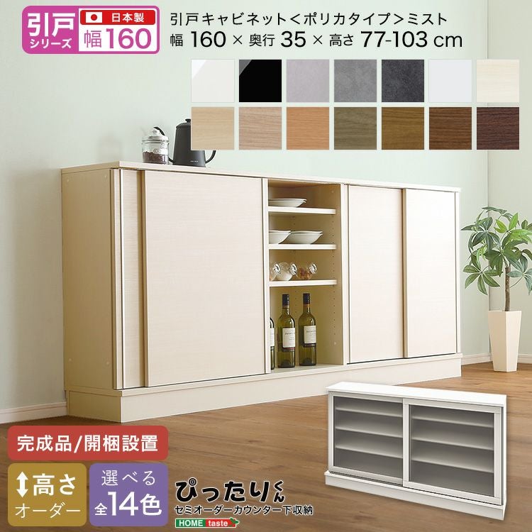 他の画像を見る カウンター下収納 キャビネット 引戸 キッチン リビング 玄関 高さオーダー 14色 幅160cm 奥行35cm セミオーダー 日本製 完成品 開梱設置 【引戸シリーズ】セミオーダーカウンター下収納ぴったりくん キャビネット(ポリカタイプ ミスト) 幅160cm×奥行35cm [SH-19PSG160M35] ¥ 99,900 税込 お気に入りに登録する