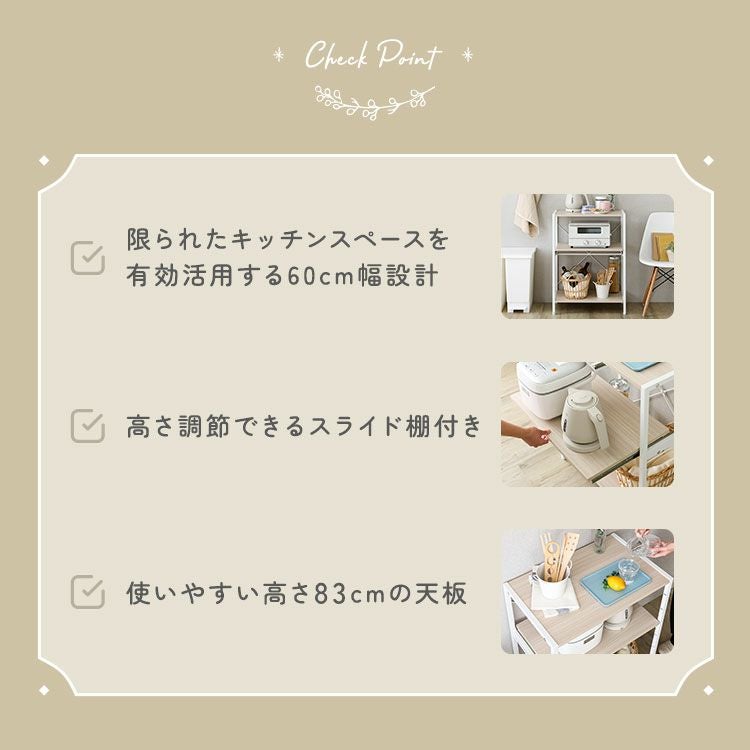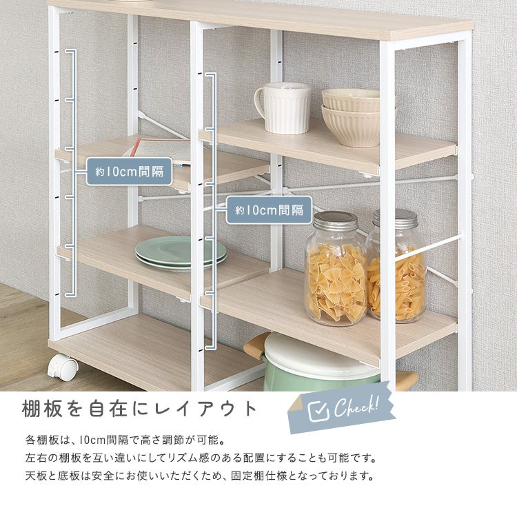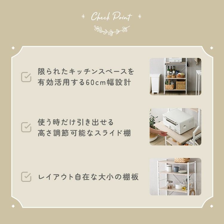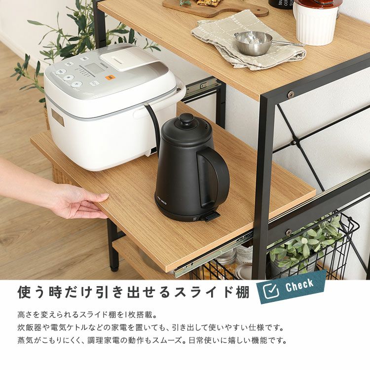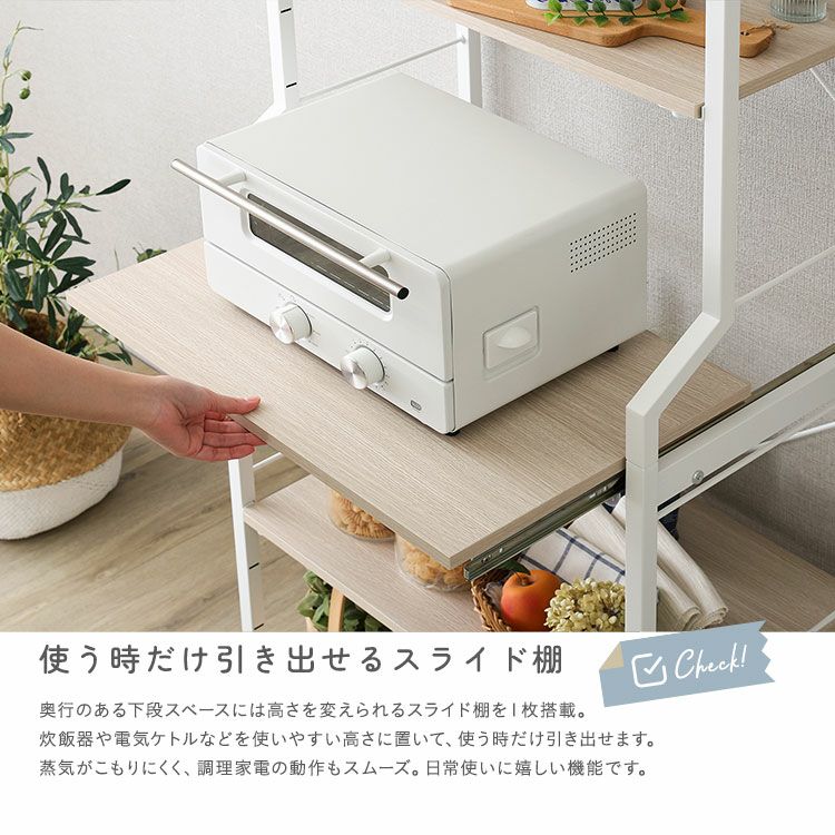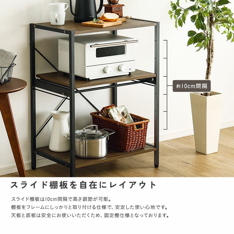 他の画像を見る ロータイプ レンジラック 3段 省スペース 可動棚 収納 おしゃれ ラック 収納棚 デッドスペース 棚位置調節 ヴィンテージ調 調節可能スライド棚付きレンジラック3段 [VRZ-3] ¥ 7,990 税込 お気に入りに登録する