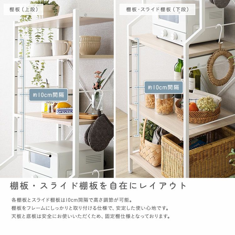 他の画像を見る ロータイプ レンジラック 3段 省スペース 可動棚 収納 おしゃれ ラック 収納棚 デッドスペース 棚位置調節 さわやかな 調節可能スライド棚付きレンジラック3段 [FRZ-3] ¥ 7,990 税込 お気に入りに登録する