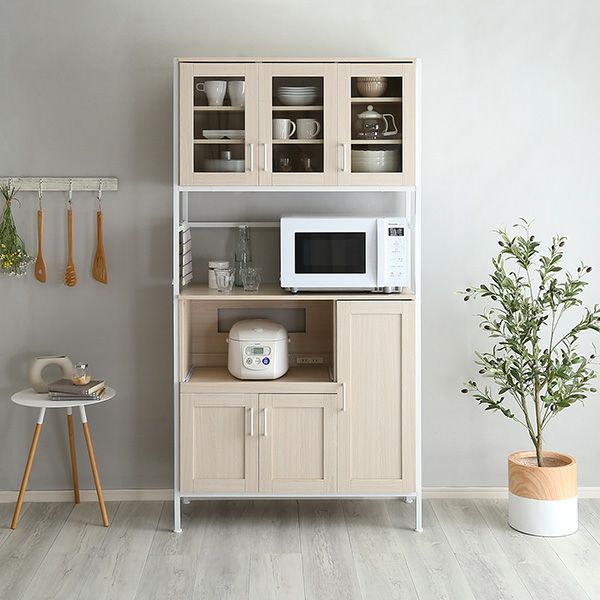 食器棚 キッチン ボード 白 ホワイト 幅 90 cm 高さ 180 おしゃれ かわいい 北欧 木 収納 レンジ台 スライド モダン 韓国 スリム アイアン 大型 一人 木製 さわやかなオシャレ食器棚 Frais-フレ- [FRA-1890]