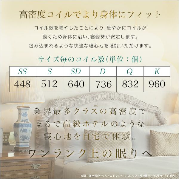 他の画像を見る マットレス ワイドダブル ポケットコイル ポケットコイルマットレス 高品質 コンパクト 高反発 厚さ23cm 省スペース 抗菌 防ダニ 防臭 リバーシブル 日本製ポケットコイルマットレス【nukkua-ヌックア-】(ワイドダブル) [SH-30-YHM-02WD] ¥ 58,900 税込 お気に入りに登録する