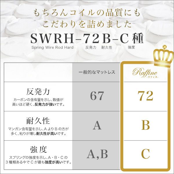 他の画像を見る インテリア・寝具・収納・マットレス・ポケットコイルマットレス マットレス シングル ポケットコイル ロール梱包片面仕様ポケットコイルマットレス Raffine2-ラフィネ2- キングサイズ[GRM2-K] ¥ 21,900 税込 お気に入りに登録する