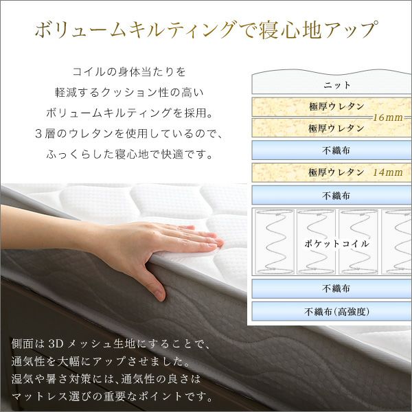 他の画像を見る 在庫切れ 832個 ポケットコイルマットレス 高さ16cm ウレタン3層 エッジサポート付き 敷布団 ベッドマット ロール梱包 [クイーン] マットレス ポケットコイル [GRM-16Q] ¥ 16,980 税込 お気に入りに登録する