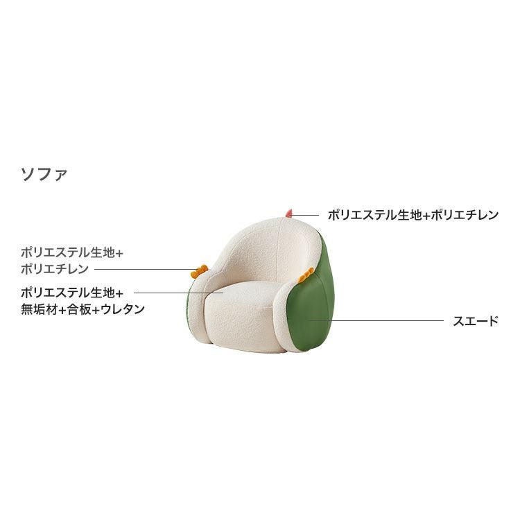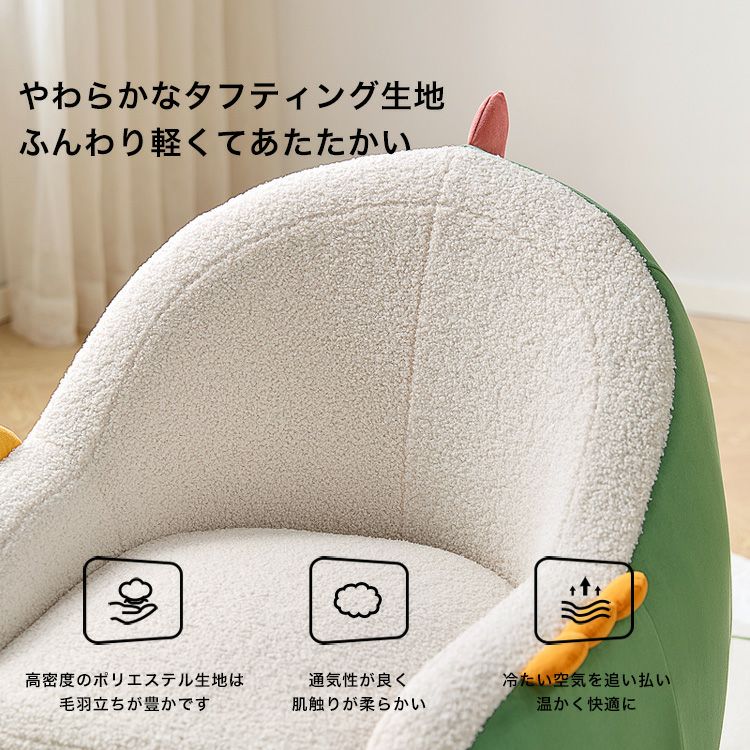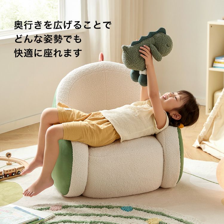 他の画像を見る 在庫切れ 恐竜ソファ 子供用ソファ スエード生地 高反発ウレタン グース羽毛 無垢材フレーム 丸みのあるデザイン 快適な座り心地 安定感 恐竜デザイン子供用ソファ [SH-LI-01049] ¥ 14,736 税込 お気に入りに登録する