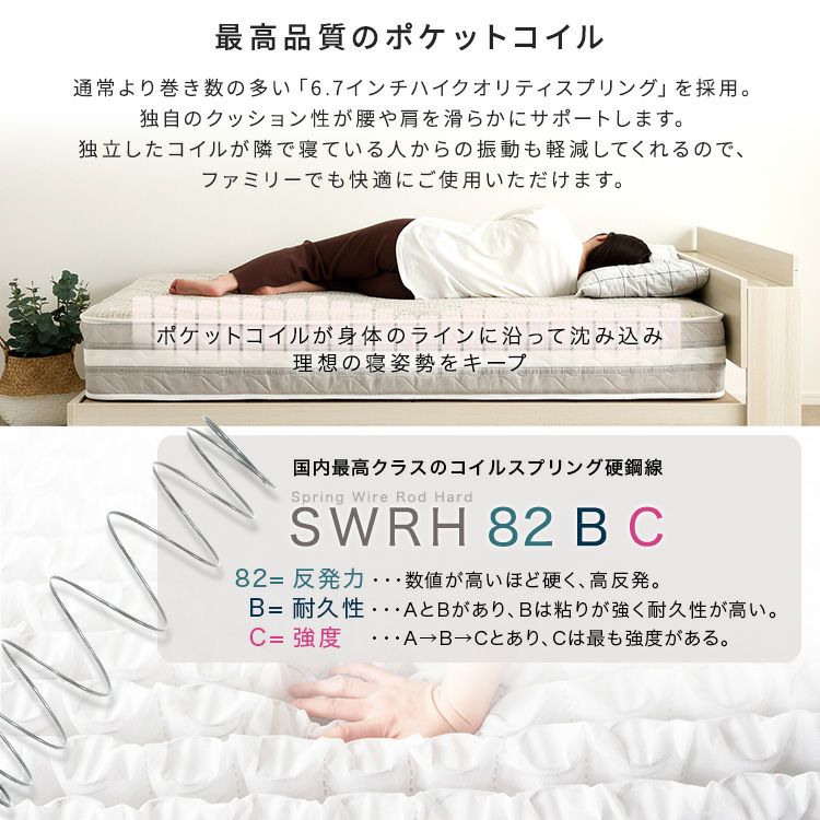他の画像を見る ベッド マットレス付 ポケットコイル ベッドフレーム 収納ベッド シングル セミダブル ダブル 引き出し付き シンプル コンセント セット 国産 日本製 棚・コンセント付きチェストベッド 日本製ポケットコイルデザインマットレスセット(シングル) [STL-SKY-S] ¥ 76,800 税込 お気に入りに登録する