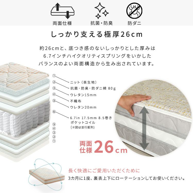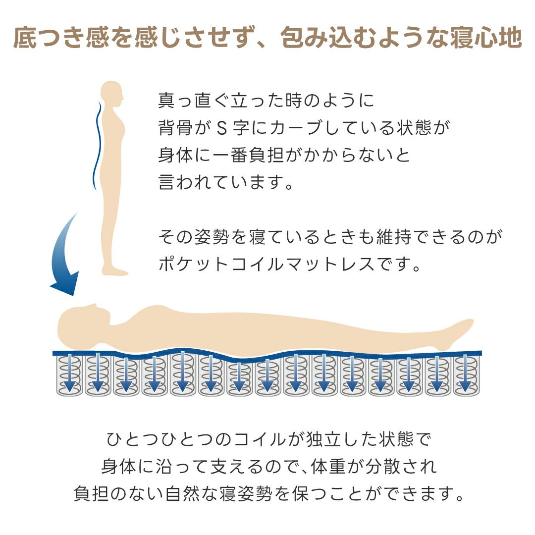 他の画像を見る インテリア 寝具 寝室 ベッド マットレス ポケットコイル 【12月22日出荷予定となります】ポケットコイルマットレス 厚み21cm セミシングルショート ¥ 9,280 税込 お気に入りに登録する