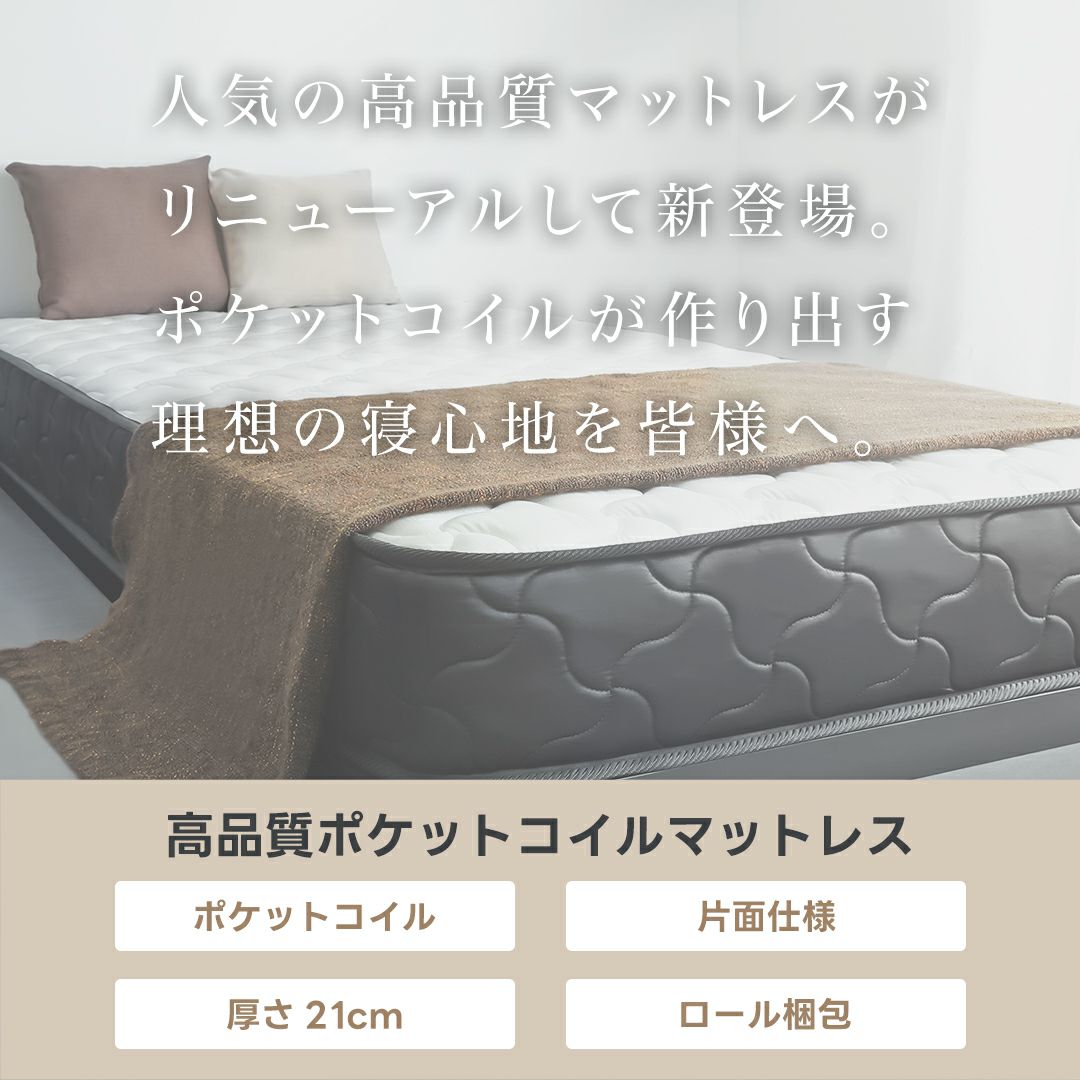 他の画像を見る インテリア 寝具 寝室 ベッド マットレス ポケットコイル 【12月22日出荷予定となります】ポケットコイルマットレス 厚み21cm セミシングル ¥ 9,280 税込 お気に入りに登録する