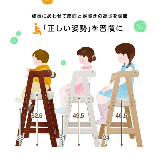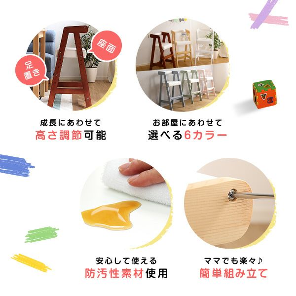 他の画像を見る キッズチェア ベビーチェア ハイチェア チャイルドチェア 子供イス 木製椅子 キッズファニチャー 子供部屋 高さ調節 ハイタイプ キッズチェア [MACA-H] ¥ 6,480 税込 お気に入りに登録する