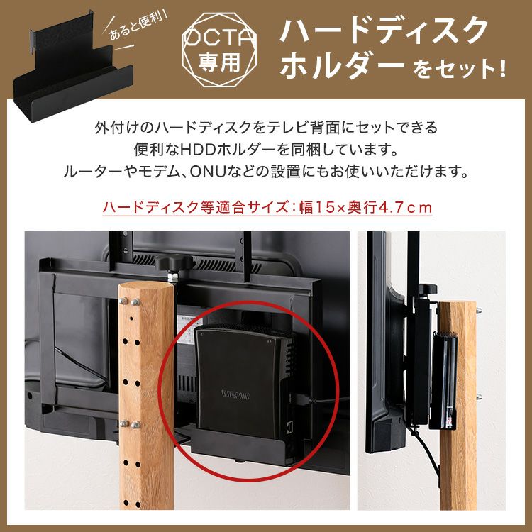 他の画像を見る 八角テレビスタンド 木目転写 ハイタイプ スイング 高さ調整 HDDホルダーセット 木目が美しい八角壁寄せテレビスタンドハイタイプ専用 ハードディスクホルダーセット [OTGT-H-SET] ¥ 16,900 税込 お気に入りに登録する