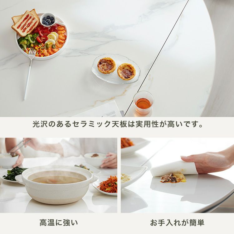 他の画像を見る 130cm 伸縮式 丸テーブル セラミック天板 熱耐性 無垢材脚 安定感 ラバーウッド 光沢仕上げ 実用性 高耐久 130cm伸縮式丸テーブル [SH-LI-00096] ¥ 69,890 税込 お気に入りに登録する