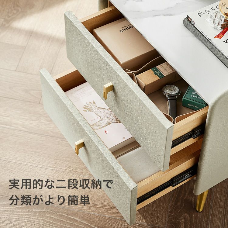 他の画像を見る ナイトテーブル 岩板天板 2段引き出し 3段スライドレール スチール脚 耐久性 傷つきにくい お手入れ簡単 高級感 2段引き出しナイトテーブル [SH-LI-00666] ¥ 19,890 税込 お気に入りに登録する