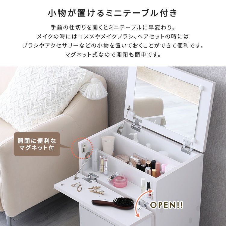 他の画像を見る インテリア 収納 収納家具 ドレッサー 鏡台 1面ドレッサー おしゃれ スツール付き コンパクト 2口コンセント ナチュラル ホワイト ダークブラウン ミラー コンパクト収納 ドレッサー スツール 2点セット コンセント付き rouge-ルージュ [SH-12-DRS] ¥ 13,900 税込 お気に入りに登録する